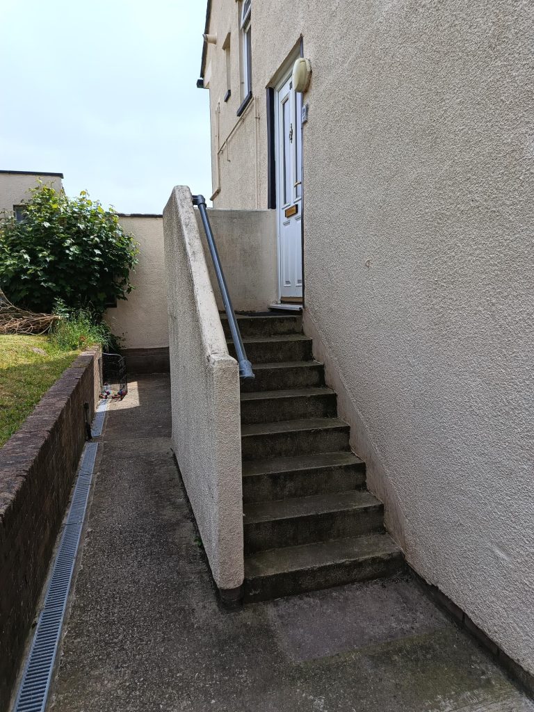 • Take down masonry external steps and landing to first floor flats and replace with purpose made freestanding metal steps and landing