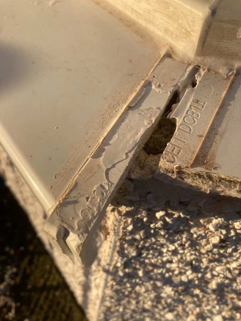 - Check reclips for guttering / ensuring new rainwater goods / guttering are fitted correctly to prevent water penetrating the EWI